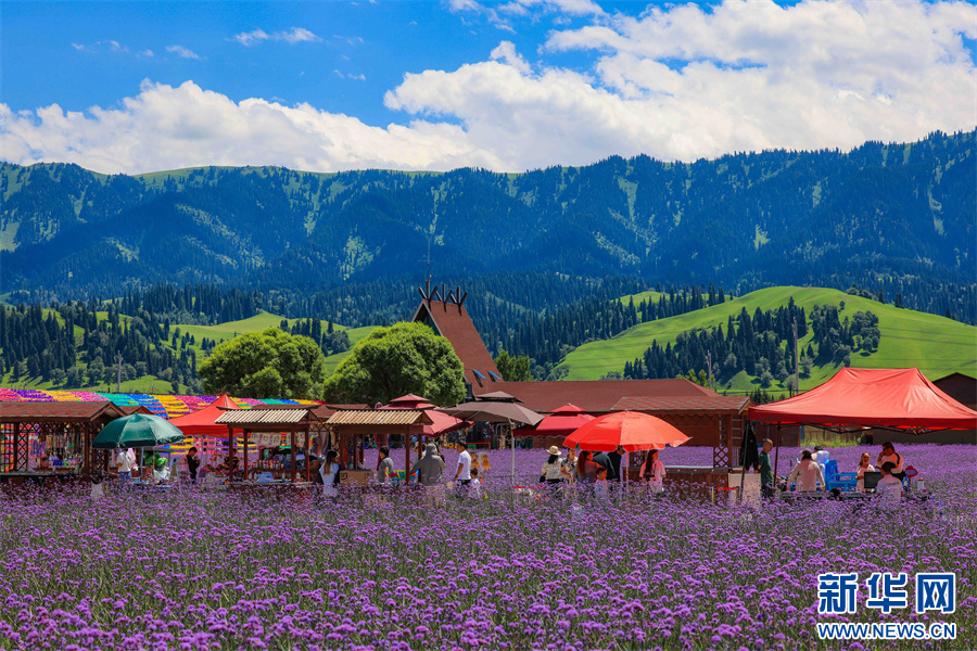 进入7月,新疆新源县迎来旅游旺季。来自全国各地游客纷纷走进“塞外江南”,感受大美伊犁的美好风光。近日,位于那拉提镇阿尔善村的花海那拉提景区的千亩鲜花迎风绽放,备受游客青睐。
