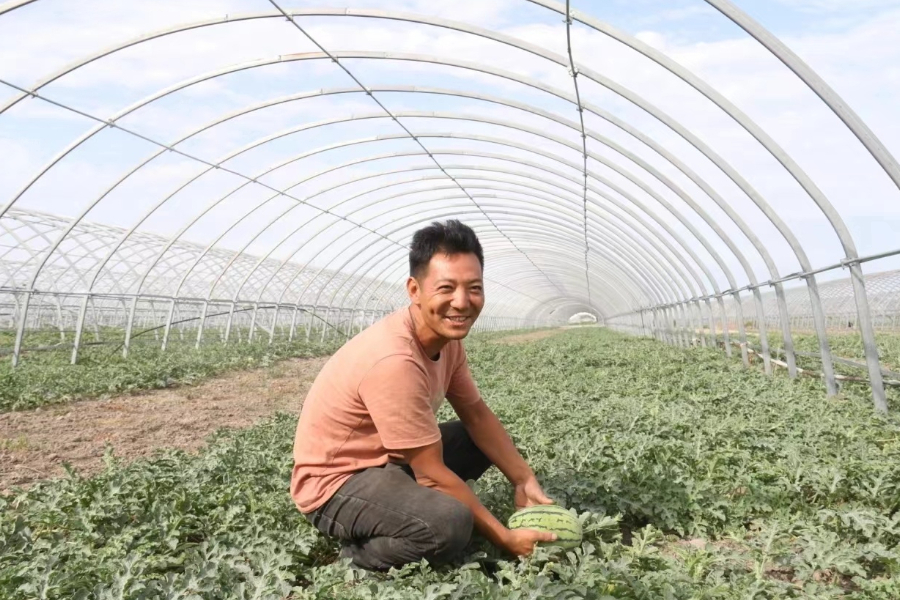 龙辉看到一个个西瓜长势喜人,心里乐开了花。“今年种植的新品种西瓜发育期短、口感沙脆汁多,单个西瓜重量在两至三公斤,每个卖能20元左右。今年预计亩产可达5吨,收入可达6万元。”