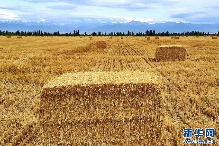 7月6日,丰收的麦草一捆捆打包,成为牲畜过冬草料。华岩明摄