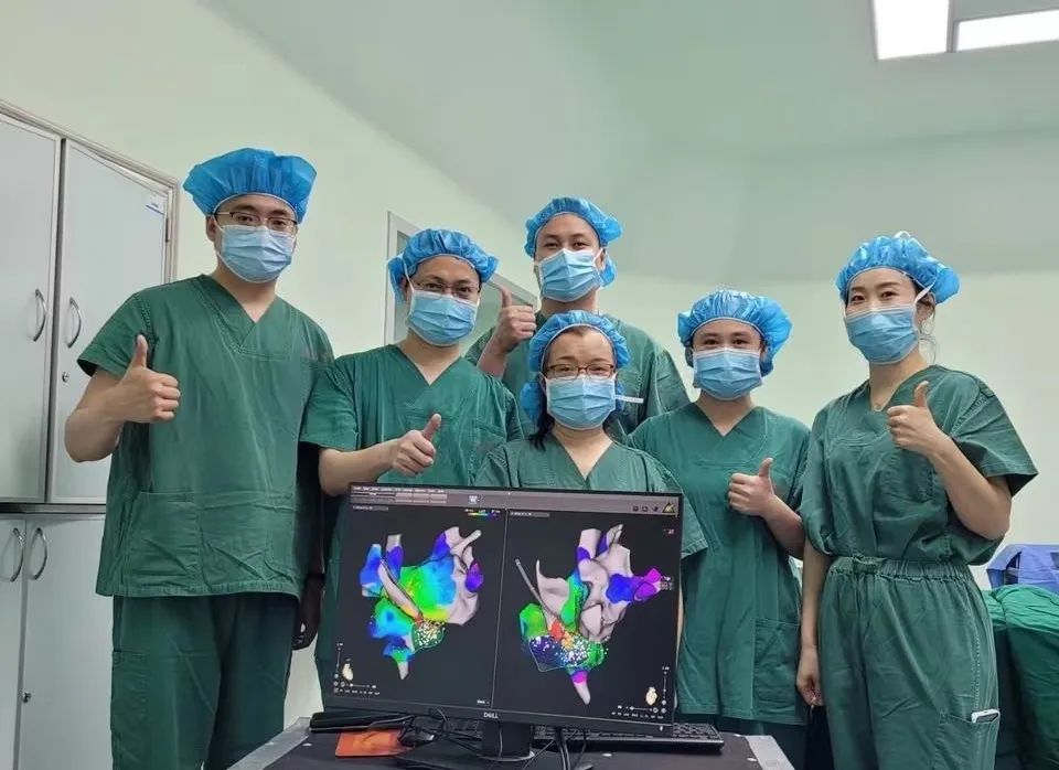 苏冬雷(中后)及心内科医护团队在自治区中医院沈祥礼主任的指导下为一名快速心律失常的患者完成心脏射频消融术。