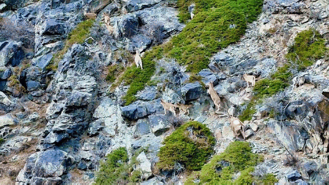 博尔通古乡的一处山坡上,觅食的北山羊。摄影:张海