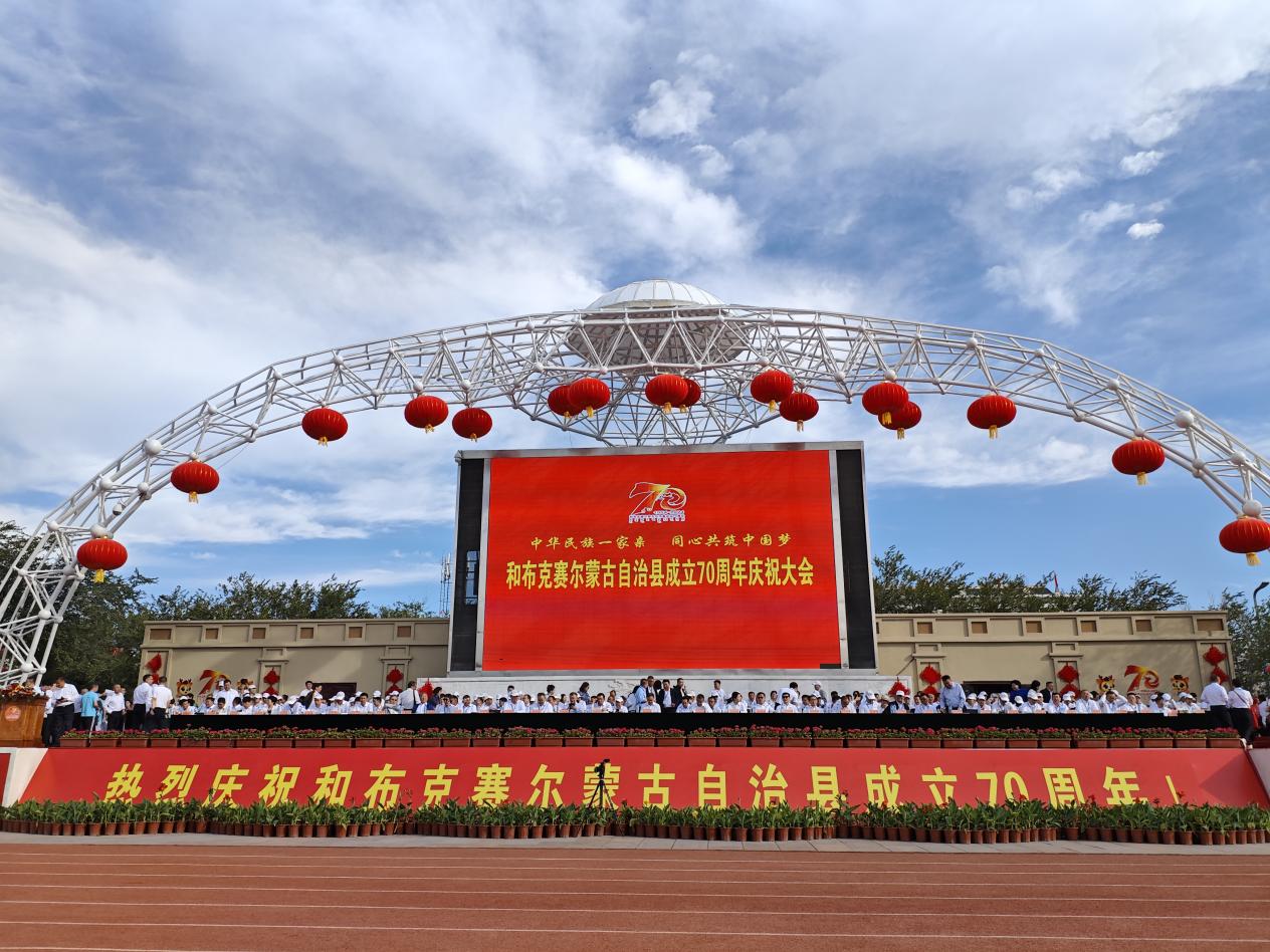 图为和布克赛尔蒙古自治县庆祝成立70周年大会现场。刘慧 摄