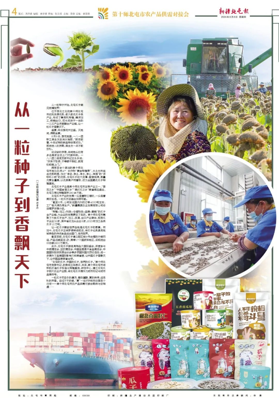 让一粒瓜子飘到世界各地是北屯瓜子的愿景。而如今,北屯瓜子正将梦想照进现实,将瓜子这类具有地域特色的传统食品送出国门、走向世界。