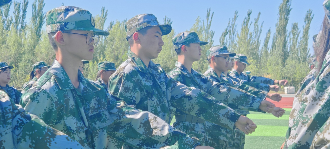 清晨,北屯高级中学的操场上,一群身穿迷彩服的新生整齐列队。他们精神抖擞、目光坚定,在教官的指导下,立正、稍息、齐步走等基础队列动作整齐划一。