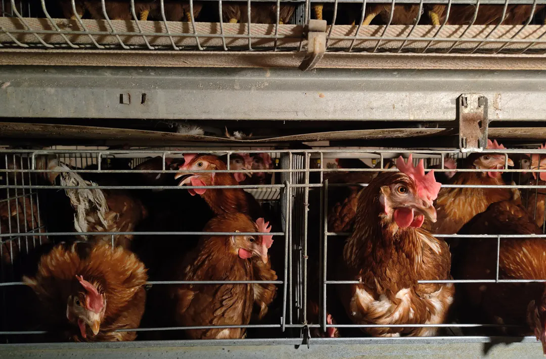 新鲜的鸡蛋通过集蛋机送至分拣区。