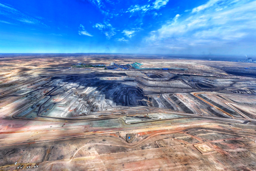 图为无人机拍摄下的新疆准东煤田五彩湾一号露天煤矿。周星亮摄