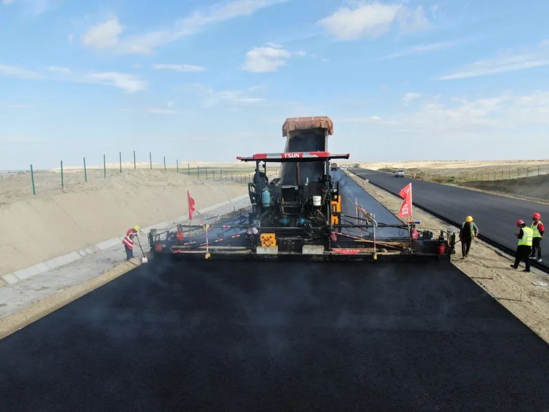 近日,十师北屯市-一八二团-黄花沟公路项目主线路面沥青摊铺顺利完成,正全力加快附属设施施工,向通车发起冲刺。