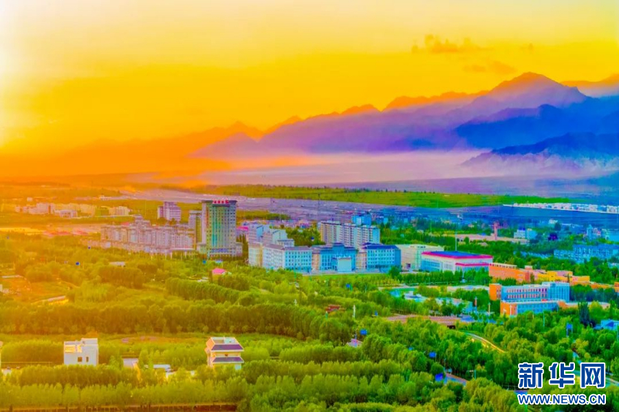时至金秋时节,绝美秋景轮番上线,夕阳下的新疆铁门关市,远山与近水遥相呼应,雪山绵亘、河水徜徉、绿树成荫,满目葱茏,整座城市充满生机与活力。近年来,铁门关市持续加强生态文明建设,实施造林扩绿工程。如今,城市建成区绿化覆盖率达43.42%,人均绿地面积达29.4平方米。(李嘉成)