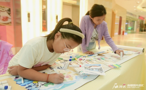 9月7日,乌鲁木齐市小朋友在桑皮纸上创作《我的阿勒泰》作品。