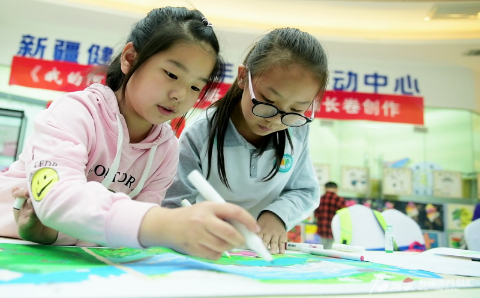 金山碧水蓝天、房车在营地停留、游客在将军山滑雪、小朋友在草地上踢足球、牛羊在高山下悠然吃草……9月7日,来自乌鲁木齐经济技术开发区(头屯河区)、乌鲁木齐高新技术产业开发区(新市区)的30位各族少年儿童,用五颜六色的画笔,在20米非遗桑皮纸长卷上共同描绘心中的阿勒泰。作为新疆是个好地方——中国新疆户外运动大赛2024新疆汽车(房车)露营大会系列活动—,主办方计划组织乌鲁木齐、阿勒泰两地的56名各族少年儿童,在非遗桑皮纸20米长卷上,描绘阿勒泰四季自然景色、人文风情及汽车(房车)露营、滑雪竞技等大众体育运动。