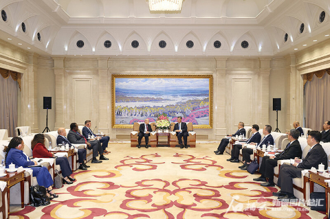 9月9日,自治区党委书记马兴瑞、自治区主席艾尔肯·吐尼亚孜在乌鲁木齐会见来新疆参访的约旦、波黑、马里、老挝、马尔代夫、所罗门群岛驻华使节代表团一行。石榴云/新疆日报记者 崔志坚摄