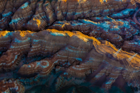 小红山位于新疆克拉玛依市西北40多公里处的戈壁深处,这里山丘高峻陡峭,沟壑纵横,山体由红色、黄色、白色、紫蓝色等组成,因其独特的雅丹地貌和丰富的色彩肌理成为摄影师和游客喜爱的“网红”打卡地。