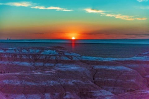 2024年9月9日,新疆克拉玛依市小红山沐浴在晚霞中,光影醉人。CICPHOTO/田国建 摄