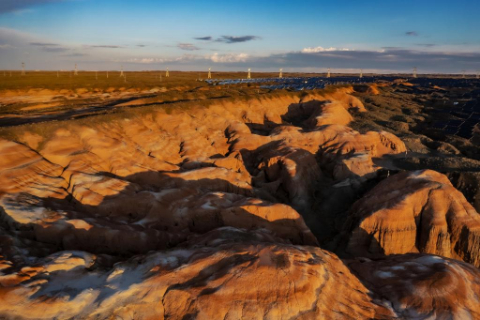 2024年9月9日,新疆克拉玛依市小红山沐浴在朝阳中,光影醉人。CICPHOTO/田国建 摄