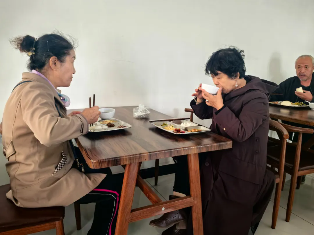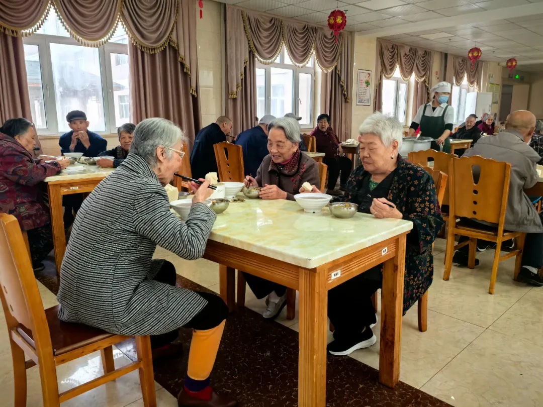 到了饭点,老人们陆续前来就餐,大家聊着家常,一派其乐融融的景象。