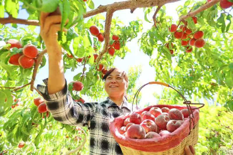 库车市各乡镇桃子陆续成熟上市。桃园里,一颗颗硕大的桃子缀满枝头,红润光鲜,果农们忙碌其间,采摘销售,一派令人“桃”醉的丰收景象。吴乐 摄