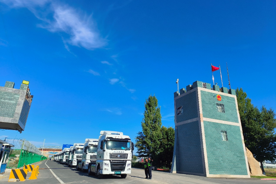 9月8日,秋日午后的阳光洒在巴克图口岸,随着通关通道的开启,一辆辆货车仅需十几秒即完成过卡,旋即鱼贯而出。