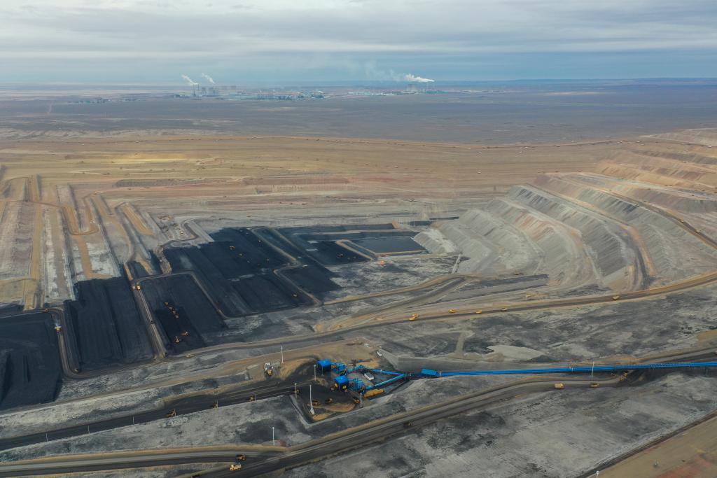 这是在国能新疆准东能源有限责任公司准东露天煤矿拍摄的作业现场(9月26日摄,无人机照片)。