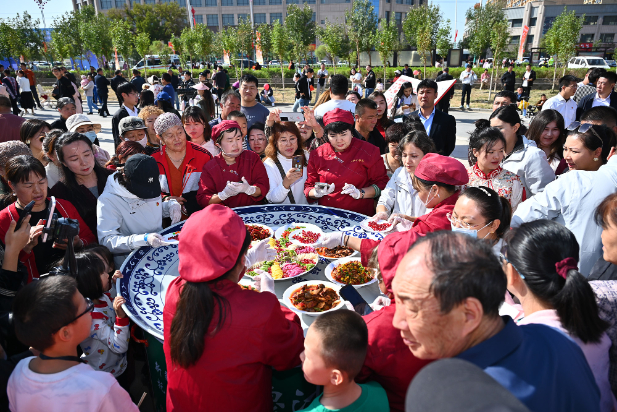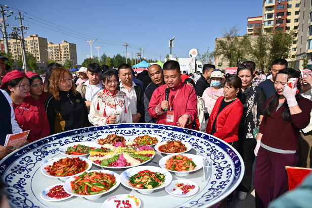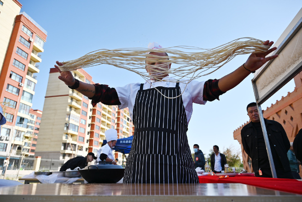 10月1日,“分享甜蜜美食·共话团结之情”“新疆第一面·托克逊拌面”系列活动精彩上演,各类活动吸引各地游客前来观看。