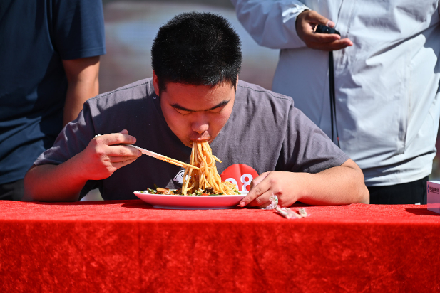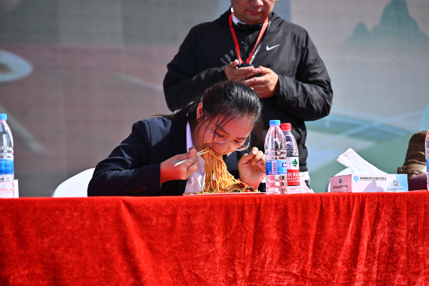 “最快吃面王”挑战赛将当天的活动推入高潮,40名参赛选手分成男女组4队展开激烈角逐,在现场游客的呐喊声中,最终男子组选手艾尼瓦尔·艾尔西以30.44秒的成绩获得第一名,女子组选手艾里非拉·依提里丁用时1分4秒获得第一名。