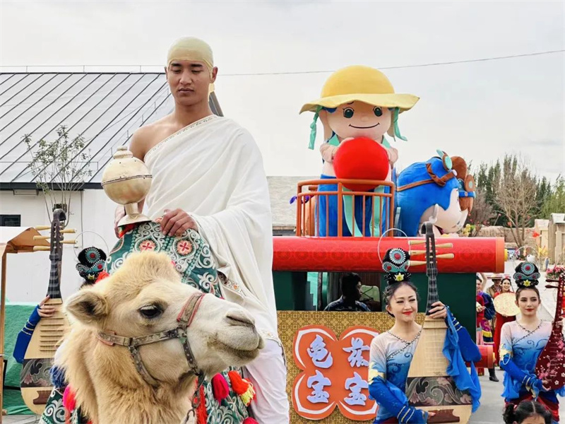 巡游队伍从库车历史文化名城游客集散中心出发,“鸠摩罗什”牵着骆驼领队前进。在佛学文化繁盛的古龟兹国,他是出生于本土的高僧,智慧非凡,佛学造诣极深,翻译了众多经论。他和“龟兹宝宝”携手带领我们穿越回到千年前的龟兹古国,一览气象万千的文化盛宴。