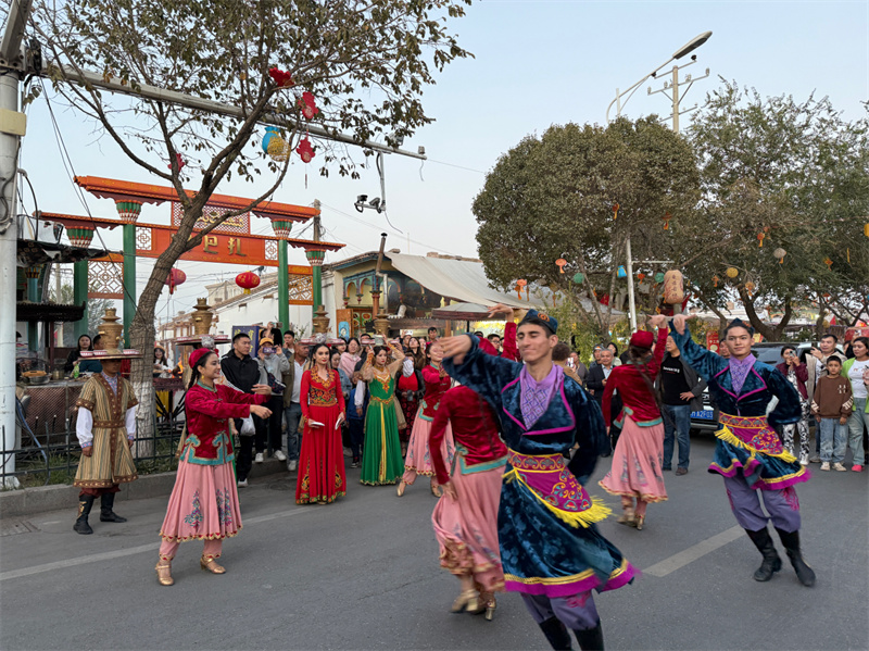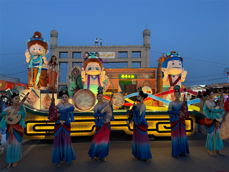 在巡游展中,一系列精彩纷呈的库车特色舞蹈表演让现场游客及市民大饱眼福,如“库车大馕舞”“顶碗舞+盘子舞”……以独特的形式、欢快的节奏,展现当地饮食文化及风土人情,让我们在热烈的舞步中,领略到了库车的历史文化和生活之美,助推巡游氛围达到当晚高潮。