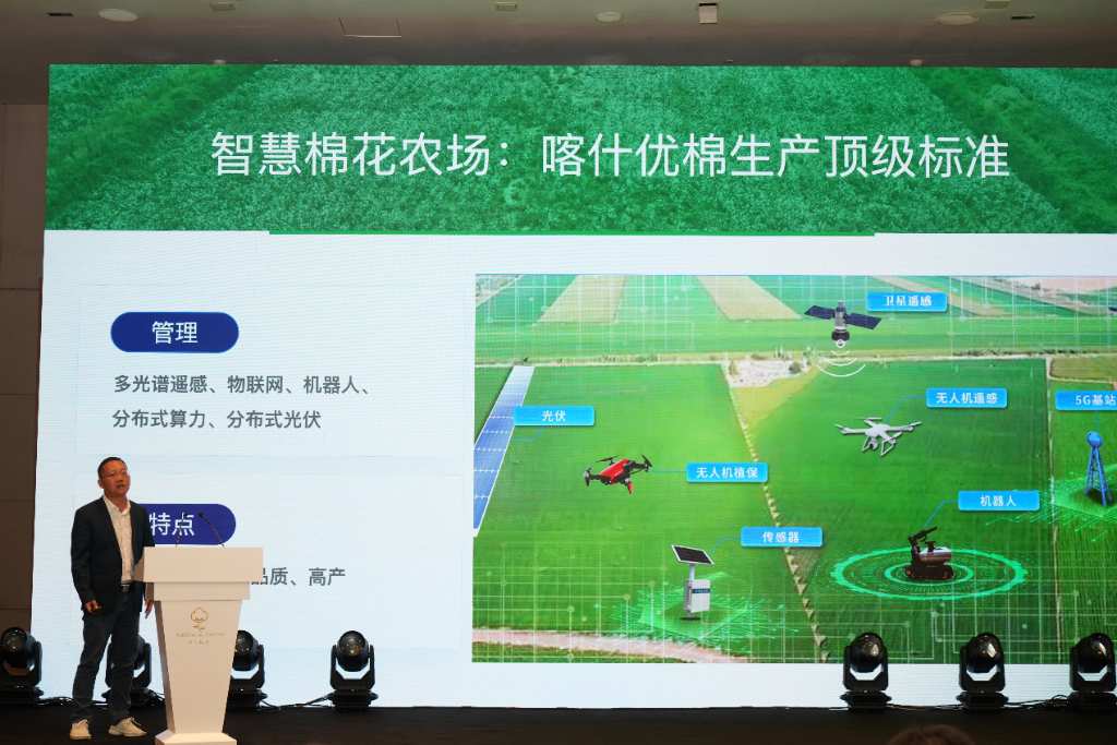 喀什优棉计划在育种、种植研发端以智赋能,培育出了兼具抗干旱、抗盐碱、抗病虫害等多重抗逆性的优质品种。在喀什莎车县喀什优棉千亩方试验基地,投入高光谱、多光谱、传感器等智能管理设备,利用AI算法、物联网实时大数据智能管理水、肥、药等作业,让棉花在生产环节实现降本增效。从棉花的优质品种选育到棉花生产的智能化管理,实现了良种配良法。2024年,喀什优棉实验基地平均亩产达到530公斤,增产47%。