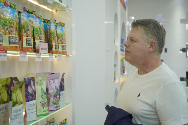 新疆不仅是多民族、多文化的聚集区,丰富的风能和太阳能资源也为新疆经济社会发展提供了有力能源支撑。在国能集团龙源吐鲁番新能源有限公司的展示台,贝内斯被光伏运行维护VR体验区吸引。通过VR眼镜,他可以置身高空操作台,俯瞰整座发电场。