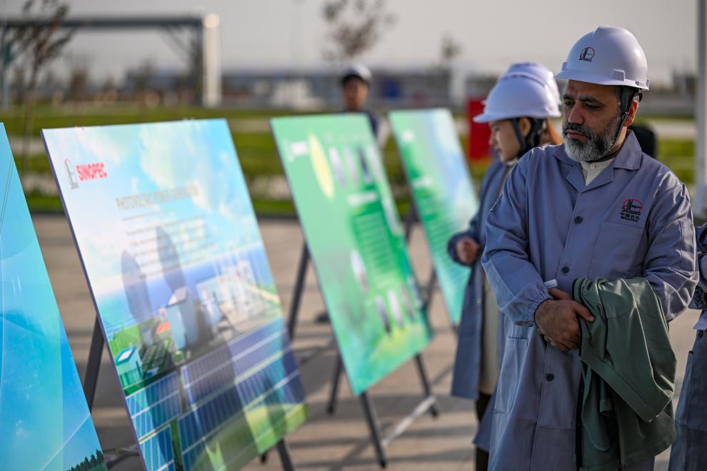 《哈萨克斯坦实业报》总编辑谢里克·科尔茹姆巴耶夫在观看国家能源集团绿色能源项目的展示时目不转睛。“这里有世界领先的绿色能源技术。”他说,“清洁能源促进了农业和工业等各产业的发展。”