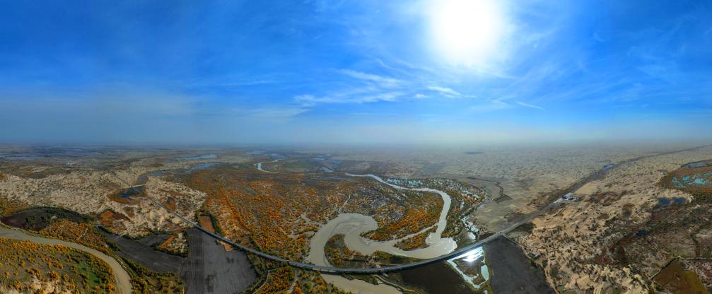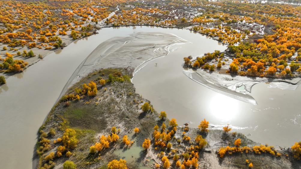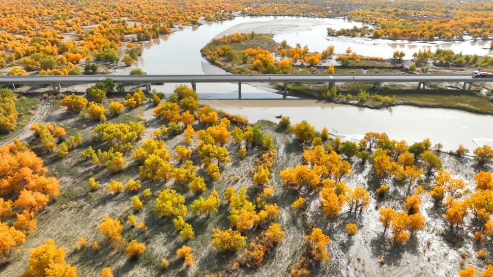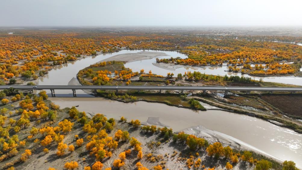连日来,新疆塔里木河流域胡杨林披上“金装”,进入秋季观赏期,胡杨与碧水、大漠相互映衬,构成一幅秀美的生态画卷。新疆塔里木河是我国最长内陆河,流域面积100多万平方公里。塔里木河流域分布着近1700万亩天然胡杨林,是南疆地区重要的绿洲生态屏障。