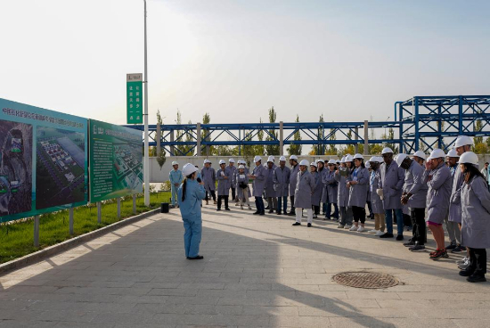 2024年10月16日,外国嘉宾在位于新疆阿克苏地区库车市的中国石化新星公司库车绿氢示范项目参观。新华社记者 陈朔 摄