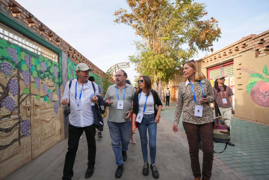 2024年10月15日,外国嘉宾在吐鲁番市高昌区亚尔镇新城片区新城西门村参访。新华社记者 陈晔华 摄