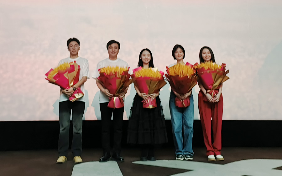 10月25日,在电影《阿克达拉》新疆首映礼上,主创人员与观众交流。新华网 周倩 摄