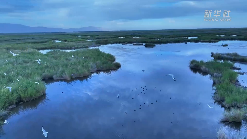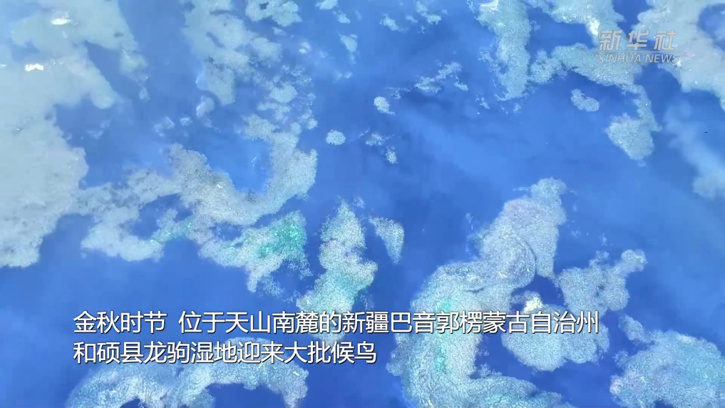金秋时节,位于天山南麓的新疆巴音郭楞蒙古自治州和硕县龙驹湿地迎来大批候鸟,湖水、芦苇、沙海、候鸟相互辉映,呈现出一幅灵动的生态画卷。