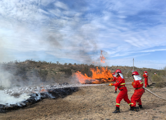 修复草原,绿化荒漠,既要加强治理,更要注重防护。近年来吉木萨尔县逐步提高森林草原防火建设,依托国家级公益林项目在北部荒漠区设置6个管护站,聘用71名护林员对192.51万亩国家级公益林进行每日巡护,排查森林草原火灾隐患。2024年组建森林草原防灭火“半专业队伍”1支,着力提升军事化管理和扑火作战实战能力,实现安全有序扑救早期森林草原火情火灾,确保“打早、打小、打了”。