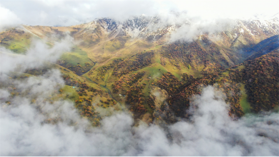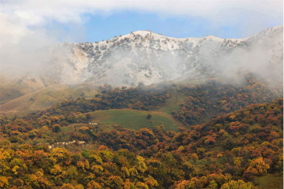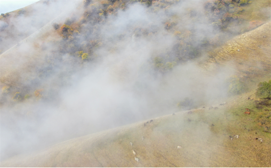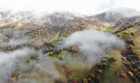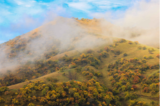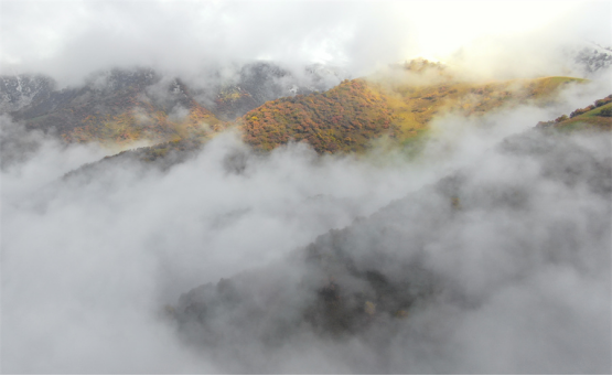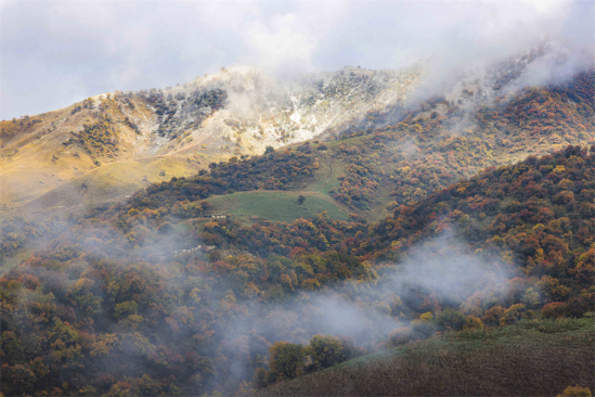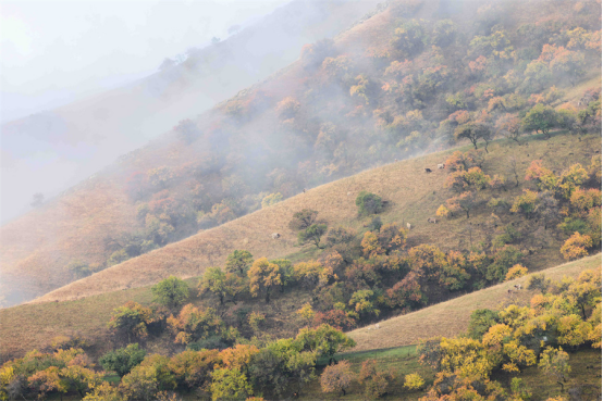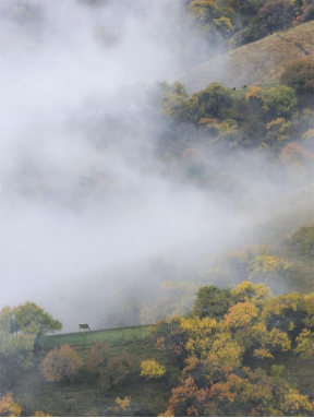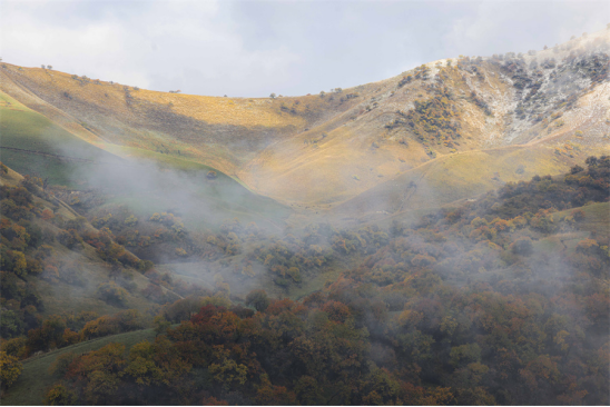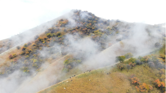 进入10月底,位于新疆新源县吐尔根乡的3万多亩那拉提杏花谷秋色正浓,金秋的色彩为杏花谷披上一件华丽的衣裳。放眼望去,山峦起伏,那满山满谷的野杏树,经过风雕霜染,已是层林尽染,绚丽多姿。10月29日,五彩杏花谷与一场不经意的秋雨相逢邂逅,由于气温的变化,山谷里云雾缭绕,时而奔涌、时而沉静,牛羊在其中悠闲觅食,宛如世外桃源、童话仙境,令人赏心悦目、心旷神怡,怦然心动!