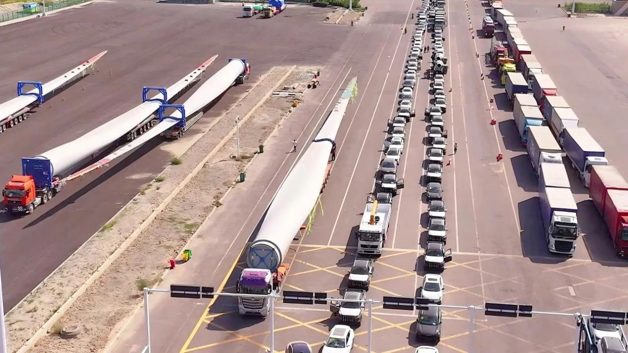 一套风力发电设备有1个机舱、1个轮毂、4个塔筒和3个叶片,与一般的出口货物不同,大型风电设备存在超宽超限等问题。霍尔果斯海关依托“智慧海关”,叠加优先查验、快查快放等便利化措施,在原有出境通道的基础上,开设了专用通道,满足装载大型风电设备车辆出境需求,实现出口风电设备“当日审结、快速验放”。