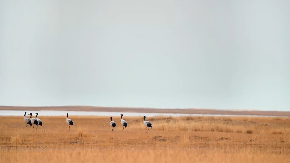 随着天气逐渐转冷,栖息在新疆阿尔金山国家级自然保护区内的黑颈鹤吹响了“集结号”,为南迁做准备。