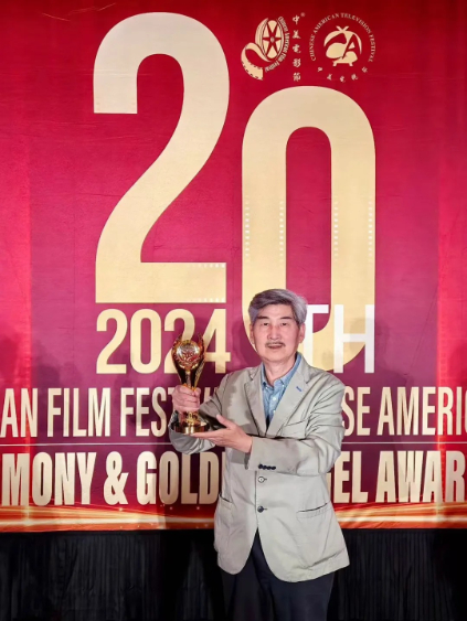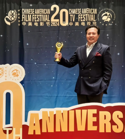 影片总制片人姚国铭领取“中华文化国际传播力”奖杯