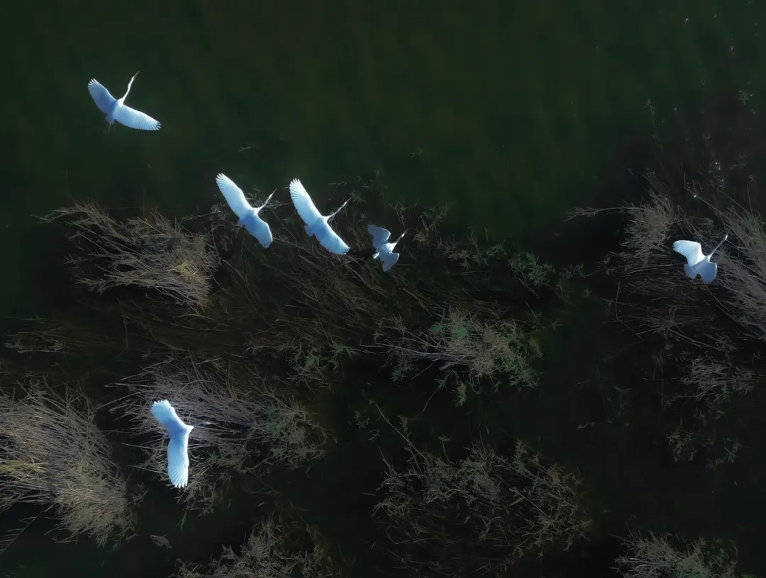 近日,在新疆生产建设兵团第二师二十二团周边的黄水渠湿地广袤的滩涂上,成群的白鹭宛如优雅的精灵在此觅食嬉戏、蹁跹起舞。黄水渠湿地水草丰茂,是候鸟迁徙的重要停歇地和栖息地。每年秋末初冬,大批迁徙的白鹭仿若赴一场盛大的约会,从四面八方陆续飞临此地栖息。它们或轻盈地掠过水面觅食,或在水草间悠然漫步,优雅的身姿与湿地的自然风光融为一体,构成了一幅美丽的生态画卷。