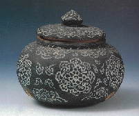 吐鲁番阿斯塔那古墓出土的宝相花纹小木罐。资料图