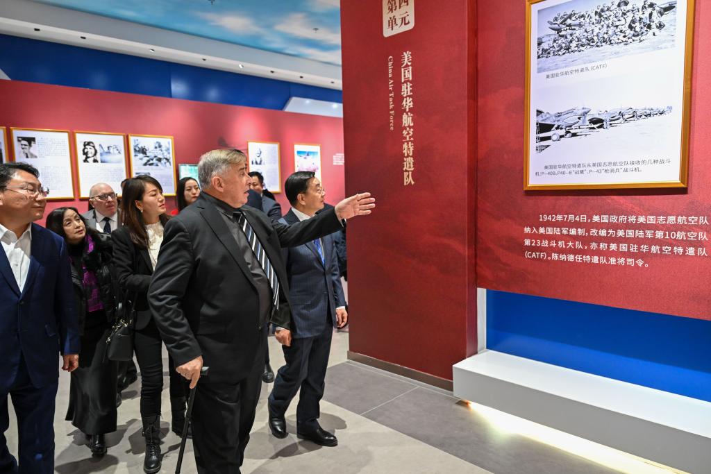 透过312张珍贵历史照片和6件文物,参观者了解到从飞虎队组建到中美军民联合抗日、共同赢得抗战胜利的“飞虎故事”,以及中美两国军民舍生忘死、并肩作战的“飞虎情谊”。