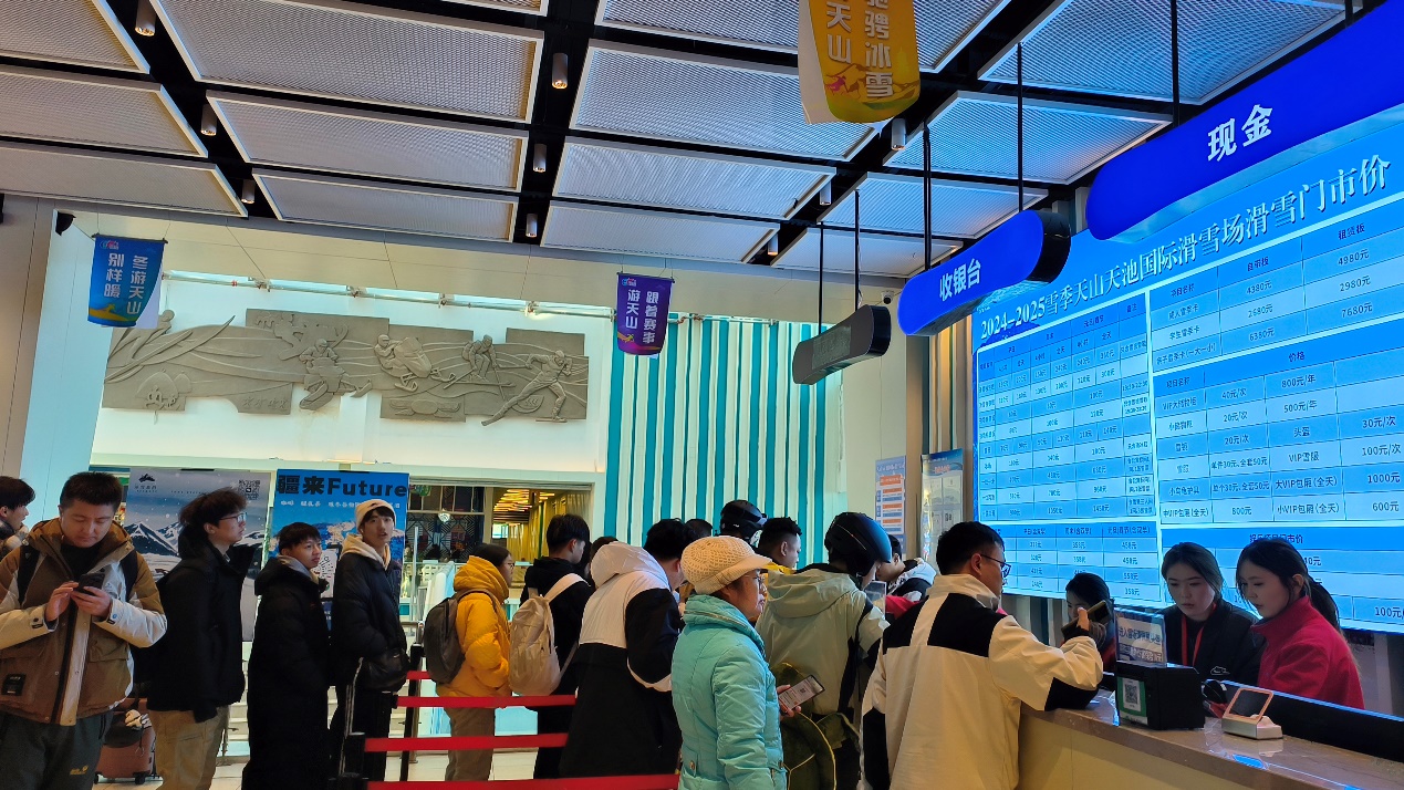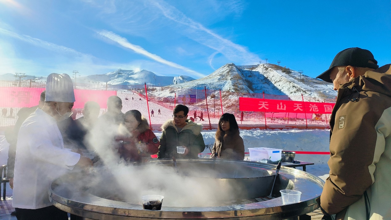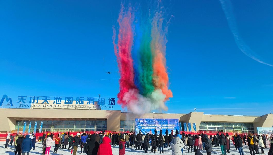 天山天池国际滑雪场“开板”当日吸引了众多各地游客