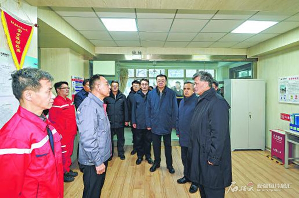 12月18日,自治区党委书记马兴瑞、自治区主席艾尔肯·吐尼亚孜深入乌鲁木齐供热企业调研并同有关方面座谈。这是马兴瑞、艾尔肯·吐尼亚孜在乌鲁木齐热力(集团)有限公司,察看设备运行情况,听取供热工作介绍。 □石榴云/新疆日报记者崔志坚摄