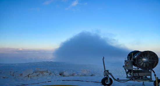12月21日,在赛里木湖滑雪场,造雪机正在造雪。新华社记者 陈朔 摄