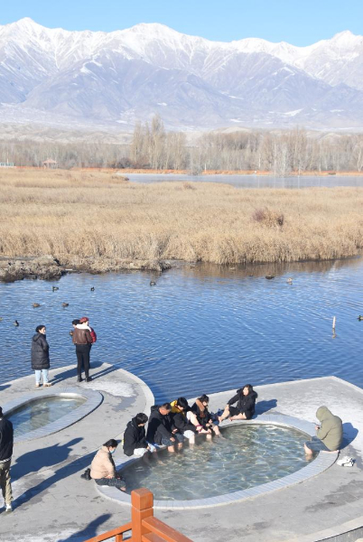 图为温泉县湿地广场免费开放的温泉泡池“莲池温泉”。新华社记者张晓龙 摄