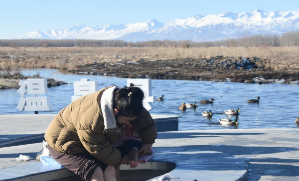 记者近日见到新疆温泉县居民库丽木汗·巴特尔时,她正带着年幼的女儿一起坐在池边,用热乎乎的温泉水泡脚。