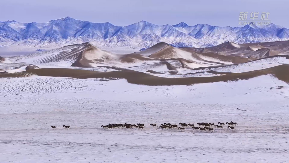新年伊始,在新疆库木库里沙漠中,摄影爱好者拍摄到成群珍稀野生动物在沙漠中奔跑、迁徙。