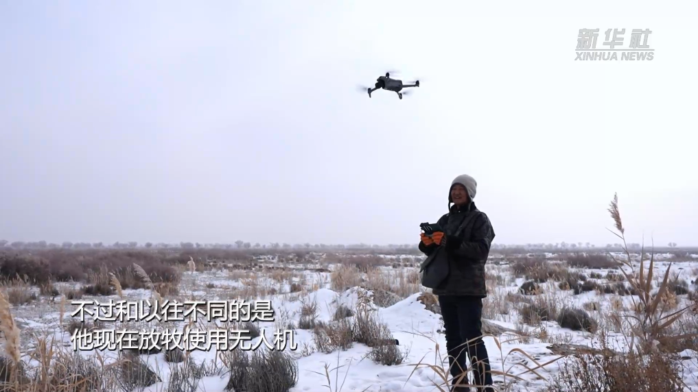 在新疆巴音郭楞蒙古自治州博湖县,牧民道尔加拉每天都要把骆驼赶到戈壁滩上放牧,不过和以往不同的是,他现在放牧使用无人机。