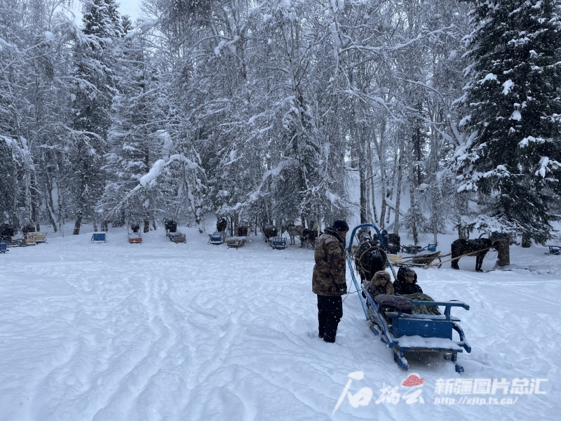 在皑皑白雪覆盖下的禾木村,骑马穿越林海雪原,坐马拉爬犁看日出,看清晨炊烟袅袅,成为在城市生活的游客放松身心的一种方式。